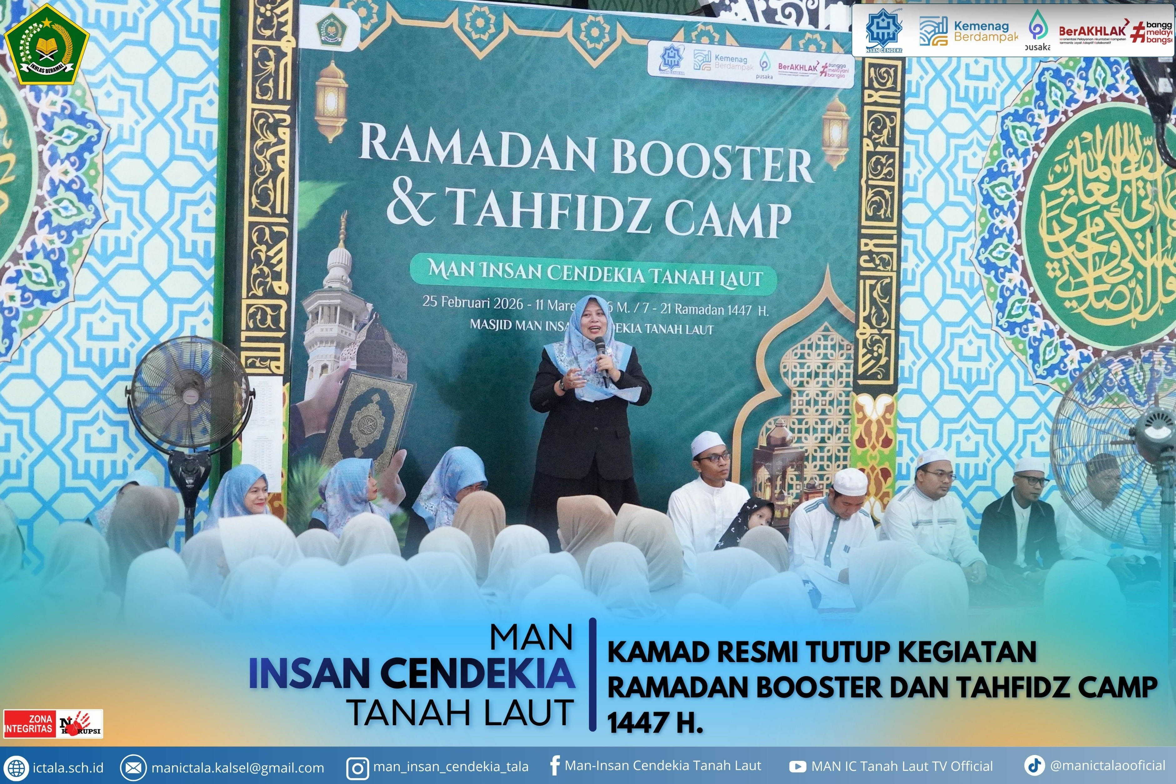 Tanah Laut (MAN ICT) – Kepala MAN ICT, Siti Salma, secara resmi menutup kegiatan Ramadan Booster dan Tahfiz Camp 1447 H. yang telah berlangsung sepanjang bulan suci Ramadan. Kegiatan penutupan dilaksanakan di Masjid MAN ICT pada Rabu (11/3/2026) atau bertepatan dengan 21 Ramadan 1447 H., sekaligus menandai berakhirnya rangkaian program pembinaan keagamaan bagi para siswa.