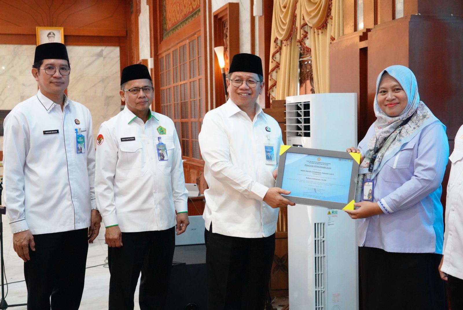 Penghargaan bergengsi ini diterima langsung oleh Kepala MAN Insan Cendekia Tanah Laut, Siti Salma, dari Kepala Kantor Wilayah Kementerian Agama Provinsi Kalimantan Selatan, H. Muhammad Tambrin, dalam sebuah kegiatan resmi yang diselenggarakan oleh Kanwil Kemenag Kalsel.