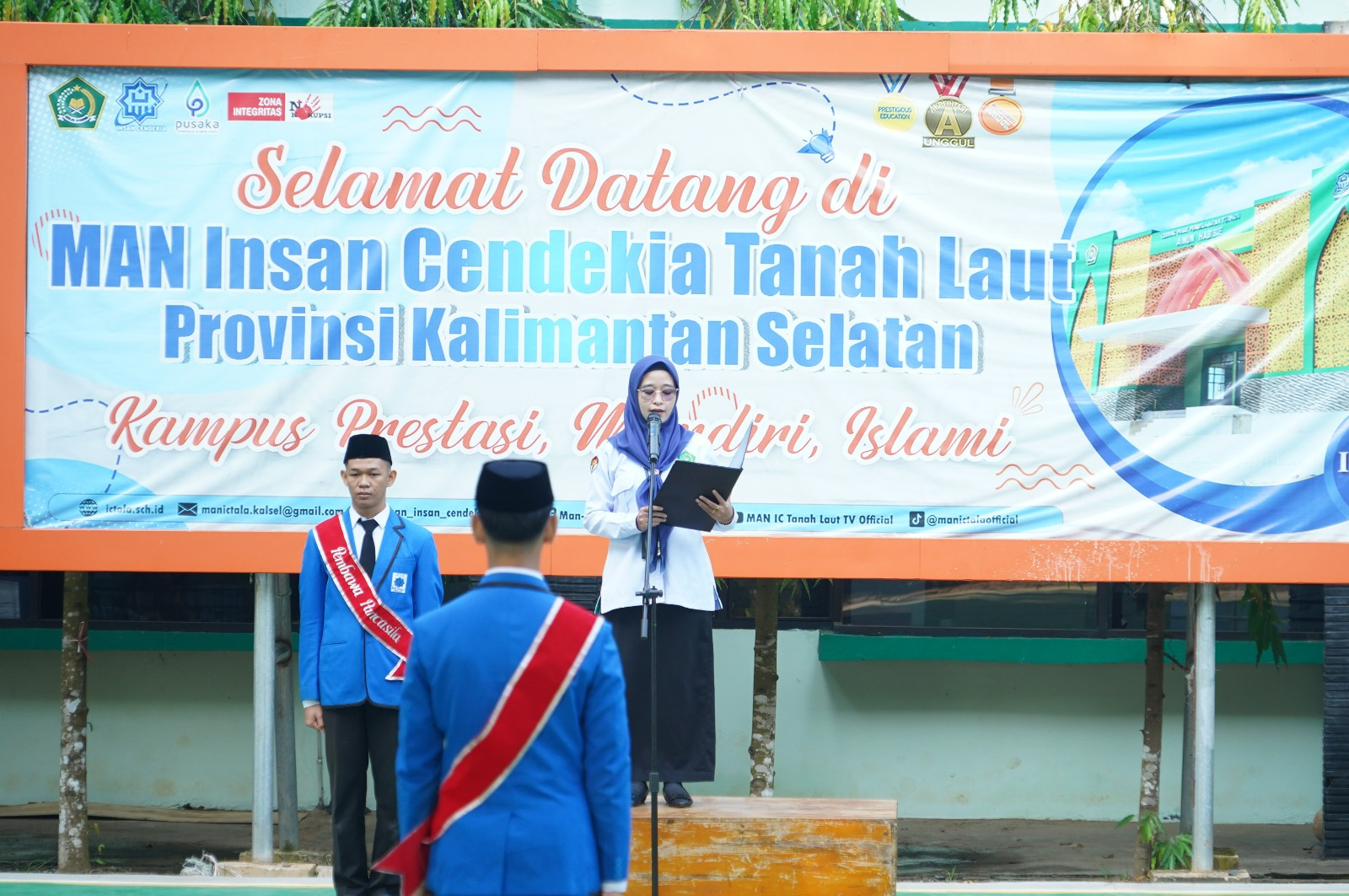 Tanah Laut (MAN ICT) – MAN Insan Cendekia Tanah Laut melaksanakan upacara bendera rutin setiap hari Senin di lapangan basket madrasah. Kegiatan ini diikuti oleh Kepala MAN ICT, Siti Salma, S.Pd.I., M.Pd., Kepala Tata Usaha Siti Muflihah, para guru, tenaga kependidikan, tenaga teknis, serta seluruh siswa dengan penuh khidmat dan tertib. Pada hari Senin, 13 Oktober 2025.