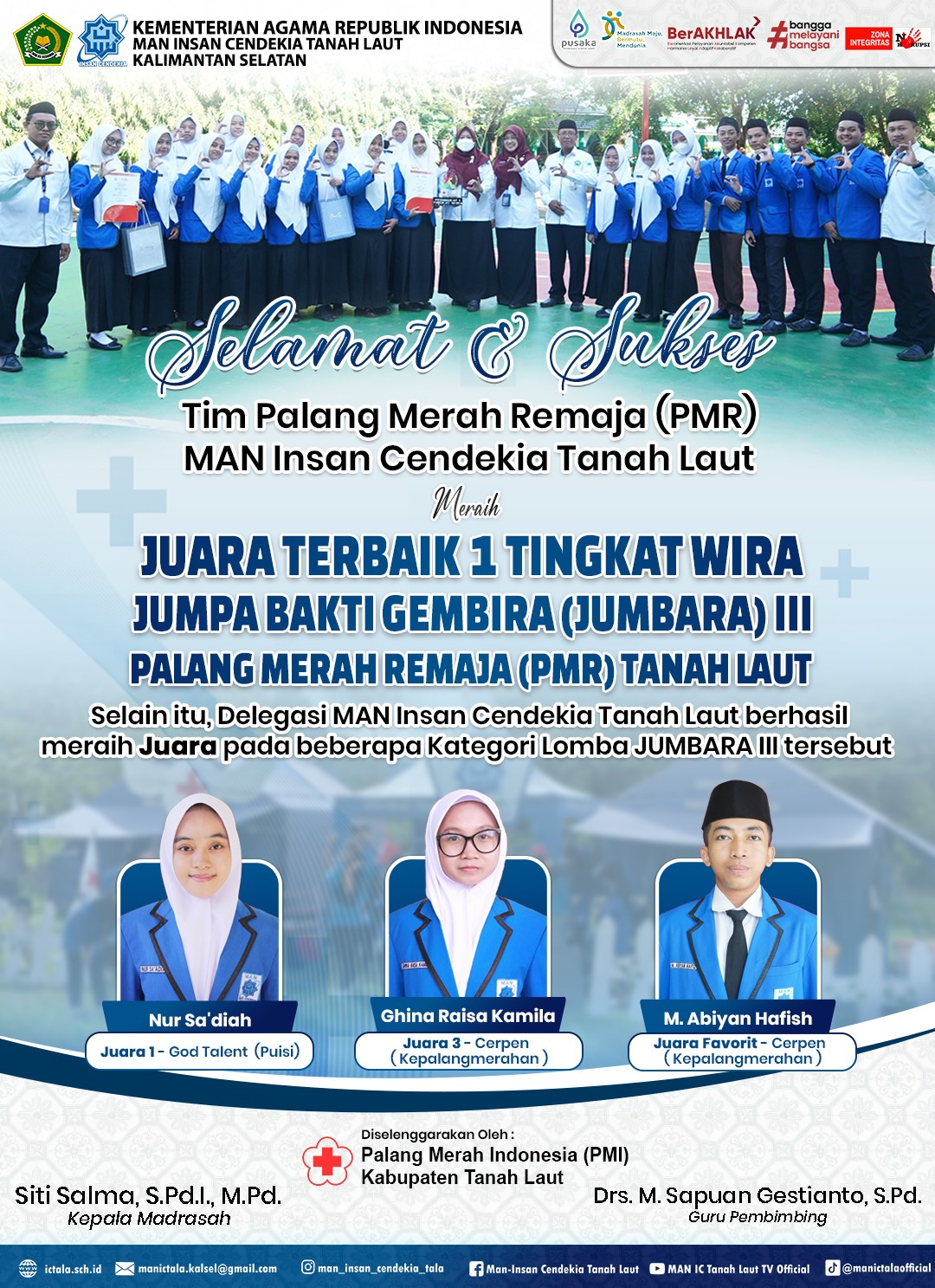 Prestasi ini semakin menegaskan komitmen MAN Insan Cendekia Tanah Laut dalam membina peserta didik yang unggul tidak hanya dalam bidang akademik, tetapi juga dalam kegiatan sosial dan kemanusiaan.